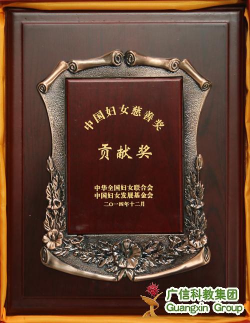 本網(wǎng)訊(記者 劉勝懷 通訊員 田天)2014年12月30日,全國(guó)婦聯(lián)、中國(guó)婦女發(fā)展基金會(huì)主辦的第三屆“中國(guó)婦女慈善獎(jiǎng)”頒獎(jiǎng)大會(huì)在京舉行,對(duì)2013-2014年度為女性公益慈善事業(yè)做出貢獻(xiàn)的單位及個(gè)人進(jìn)行了表彰。廣信科教集團(tuán)董事局、總裁趙作斌被授予“中國(guó)婦女慈善獎(jiǎng)”貢獻(xiàn)獎(jiǎng)榮譽(yù)稱號(hào),全國(guó)僅31人獲此殊榮。全國(guó)人大常委會(huì)副委員長(zhǎng)、全國(guó)婦聯(lián)主席沈躍躍,全國(guó)婦聯(lián)黨組書記、副主席、書記處第一書記宋秀巖為獲獎(jiǎng)的單位和個(gè)人頒獎(jiǎng)。集團(tuán)副總裁呂家燕女士代表趙總裁出席頒獎(jiǎng)典禮并領(lǐng)獎(jiǎng)。